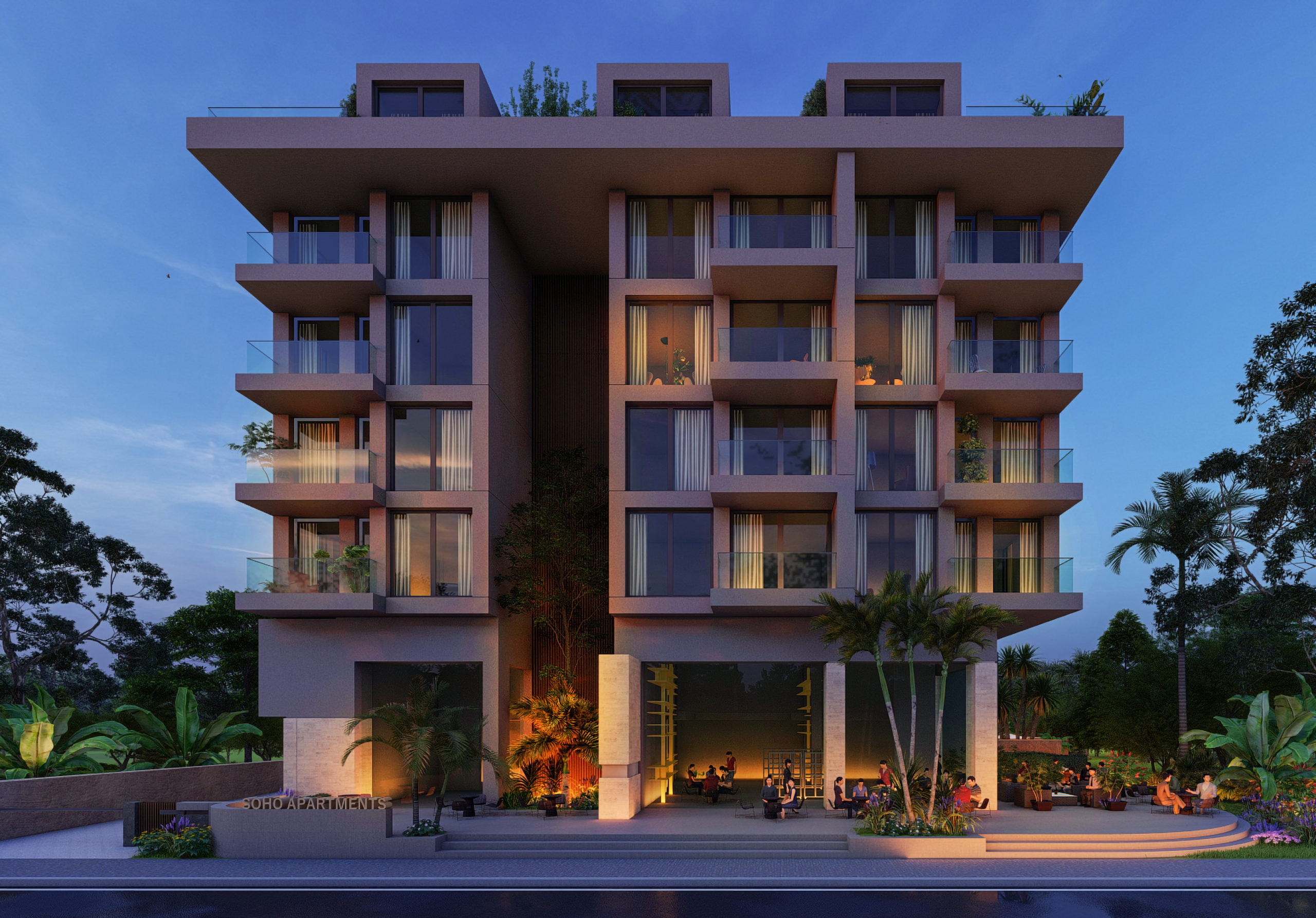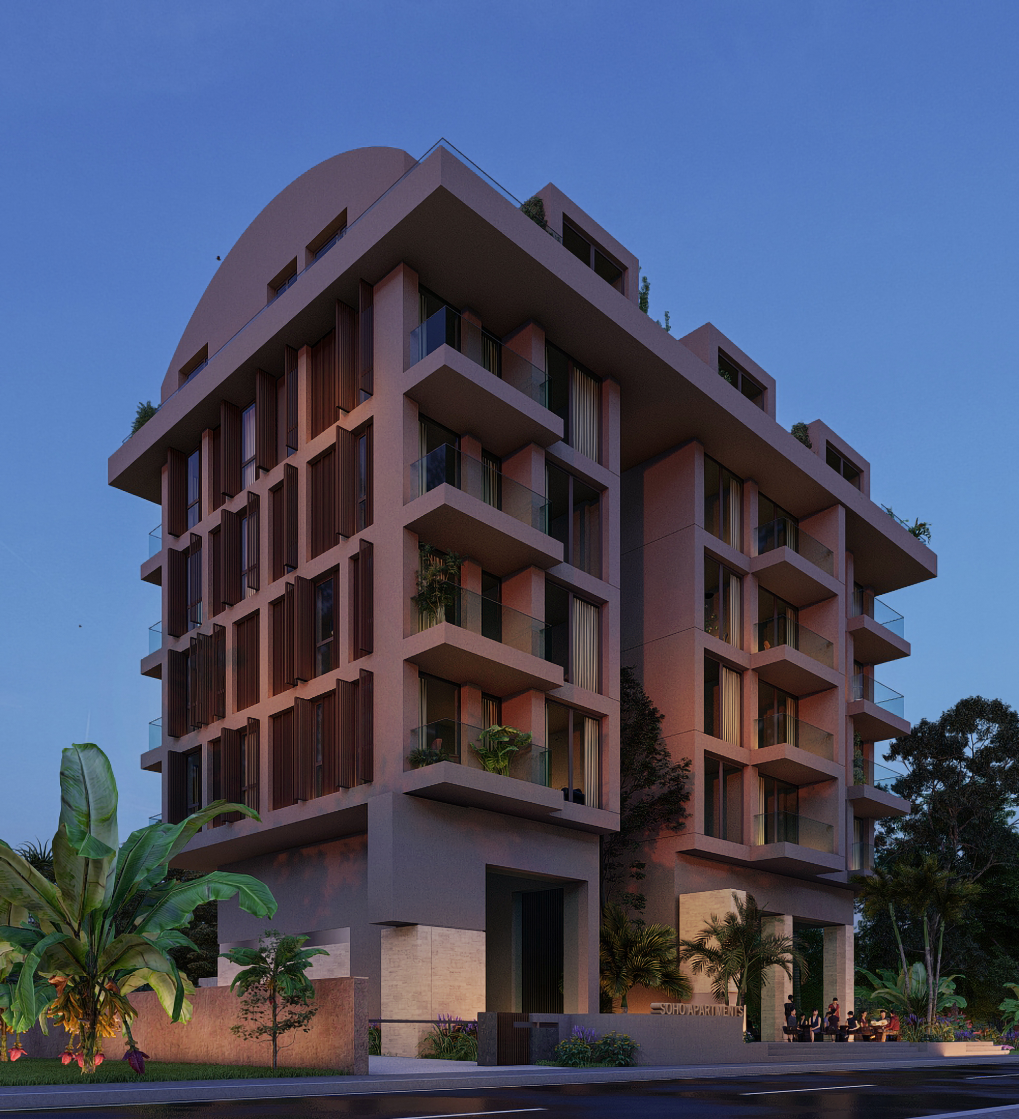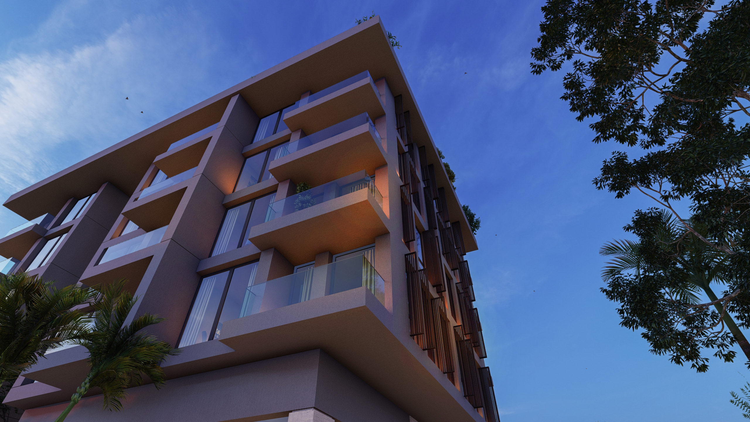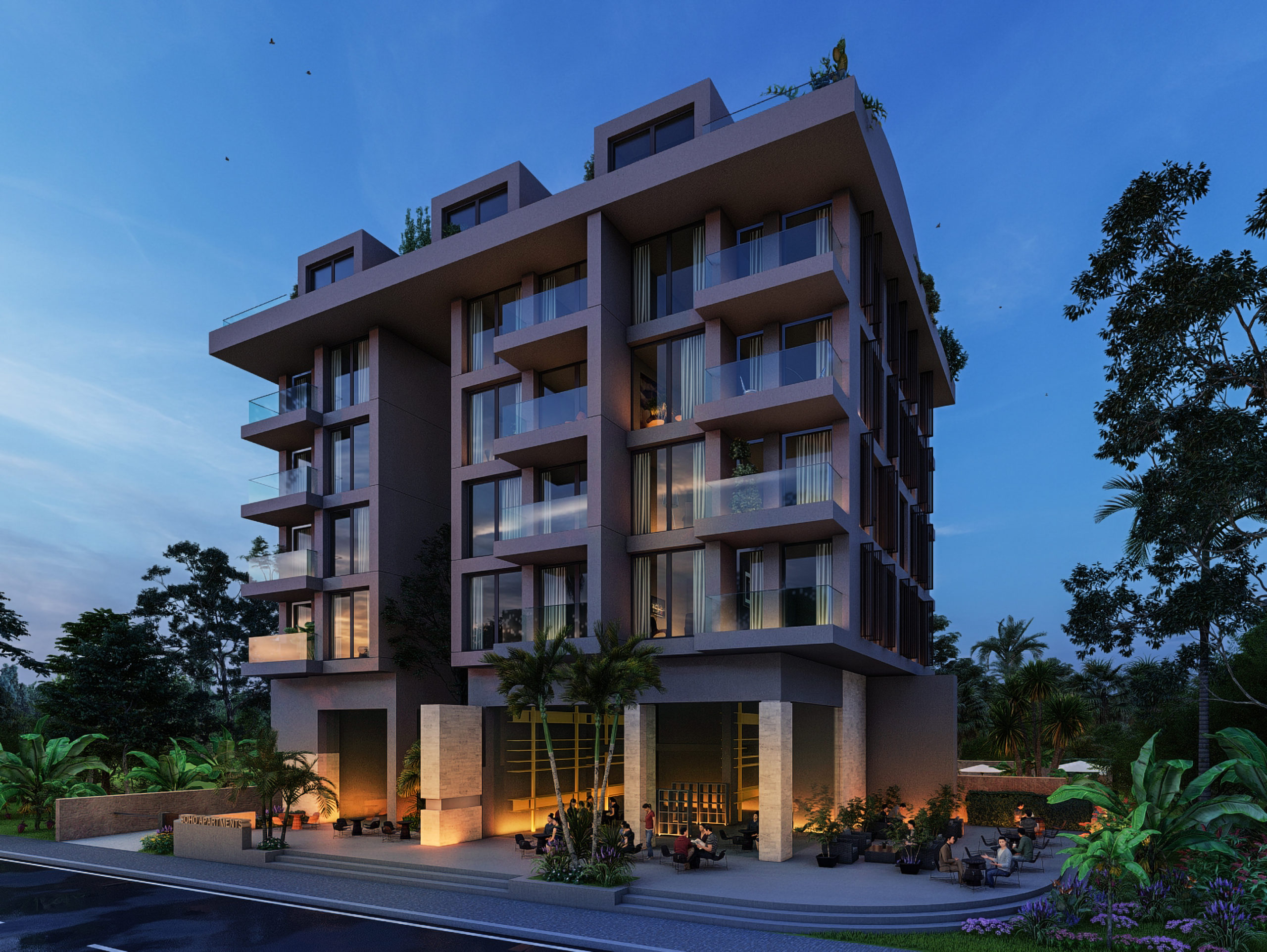 Komplekset består af 24 lejligheder med forskellige layout og 4 erhvervslokaler. Der kan vælges mellem 1 + 1 lejligheder (18 lejligheder, 61 m2) og 3 + 1 (6 lejligheder, 102 m2).