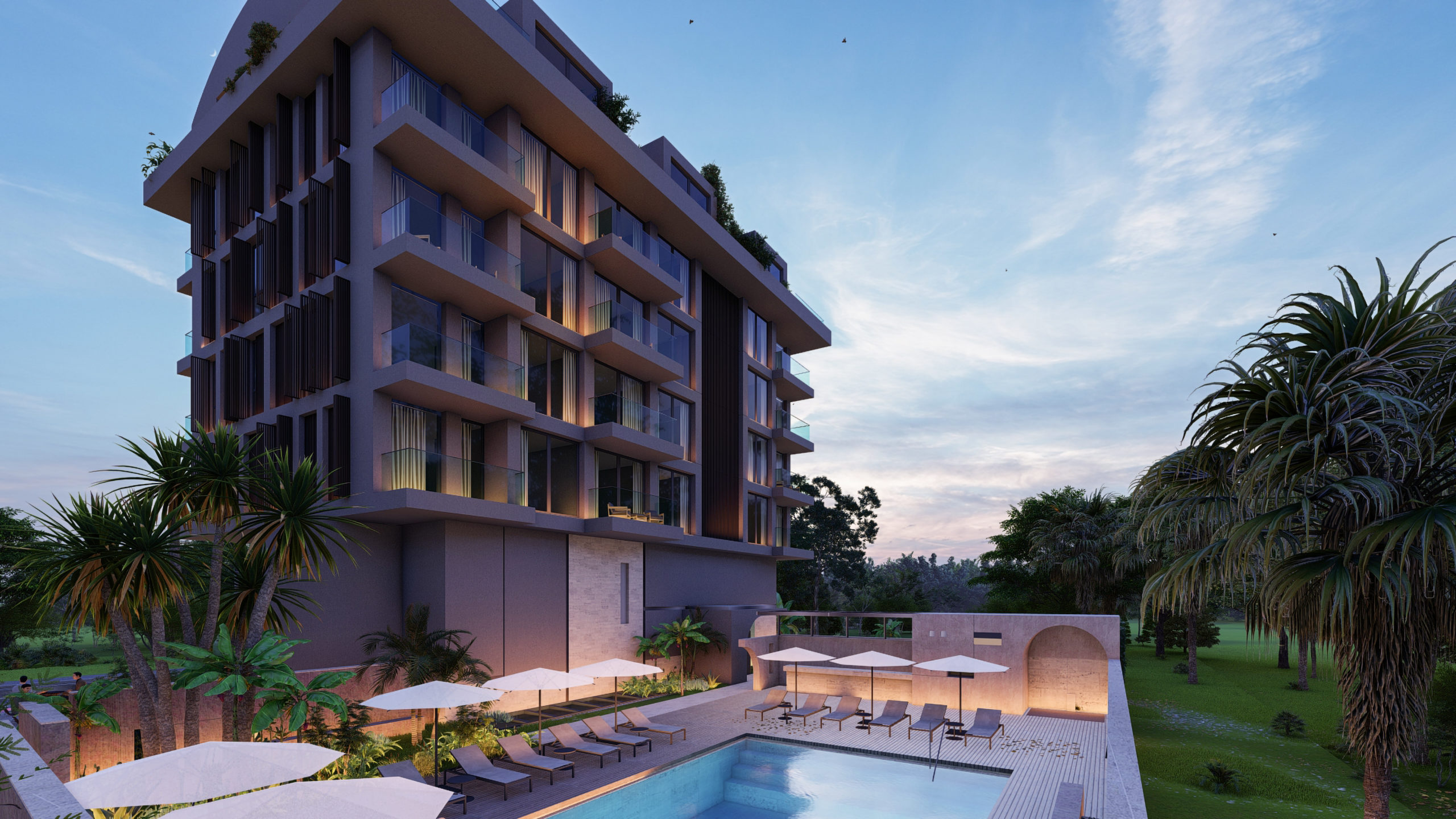Komplekset ligger i Kargicak -området – det er et nyt boligområde i Alanya, der ligger kun 20 minutter fra centrum af Alanya. Der er de fleste villaer i Kargicak, men du kan også finde store boligkomplekser her. Kargicak tilbyder en smuk udsigt over havet, og området er omgivet af store bananafgrøder. Afstand til Gazipasa Internationale Lufthavn: 25 km