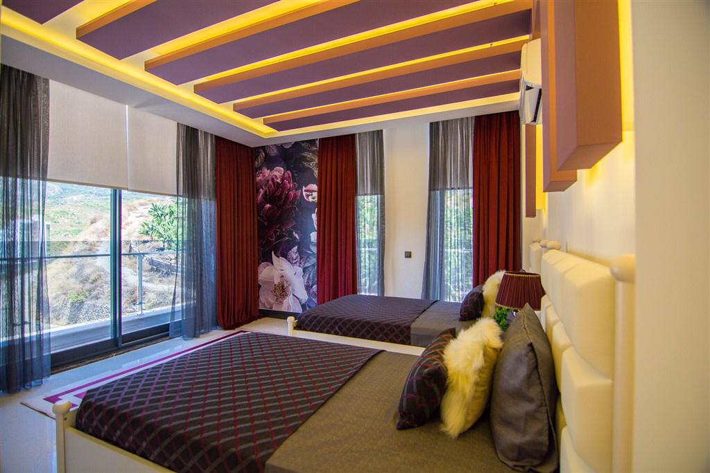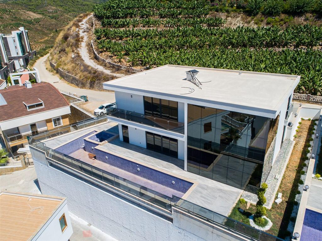 Ud over villaen, på et område på 1097 m2, er der en stor swimmingpool med en smuk terrasse med udsigt over Middelhavet og byen. Det ligger i det hyggelige Kargicak-område, kun 2 kilometer fra havet.