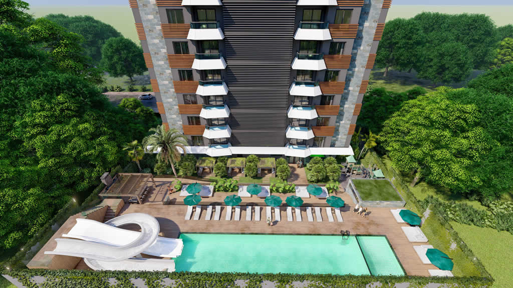 Wenn Sie eine günstige Immobilie in der Türkei kaufen möchten, präsentieren wir Ihnen möblierte Apartments mit einer Aufteilung von 1 + 1, 2 + 1 und 3 + 1 mit einer Fläche von 53 m2 in einem neuen Wohnkomplex (Next-LCD). mit der Infrastruktur eines Fünf-Sterne-Hotels. Dies bedeutet, dass in der gemeinsamen Nutzung der Bewohner des Hauses ein Außenpool mit Wasserrutschen, ein Wasserpark, ein Kinderbecken, ein beheizter Innenpool, eine Sauna, ein römisches Dampfbad, ein Erholungsbereich und ein Grill vorhanden sind , ein Spielplatz, ein elektrischer Generator, Videoüberwachung und 24/7 Sicherheit.