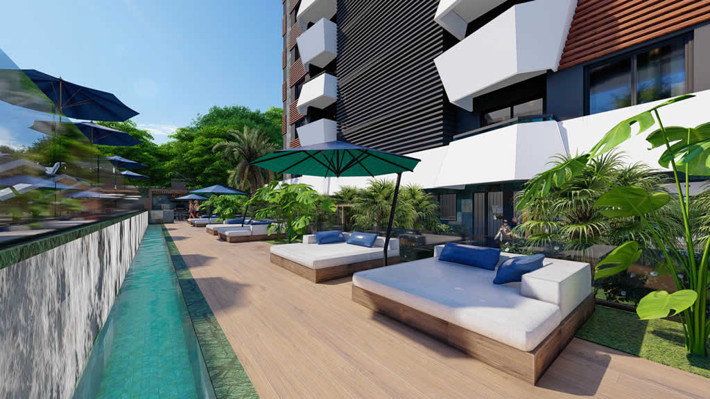 Alle Apartments verfügen über ein edles Finish, Keramikfliesen, abgehängte Decken mit eingebauter Spotbeleuchtung, hochwertige doppelt verglaste Fenster, Innentüren und eine Eingangstür. In einem geräumigen Wohnzimmer in Kombination mit einer amerikanischen Küche wird ein neues Küchenset (Farbe zur Auswahl) mit einer Granitplatte installiert und Küchengeräte eingebaut.