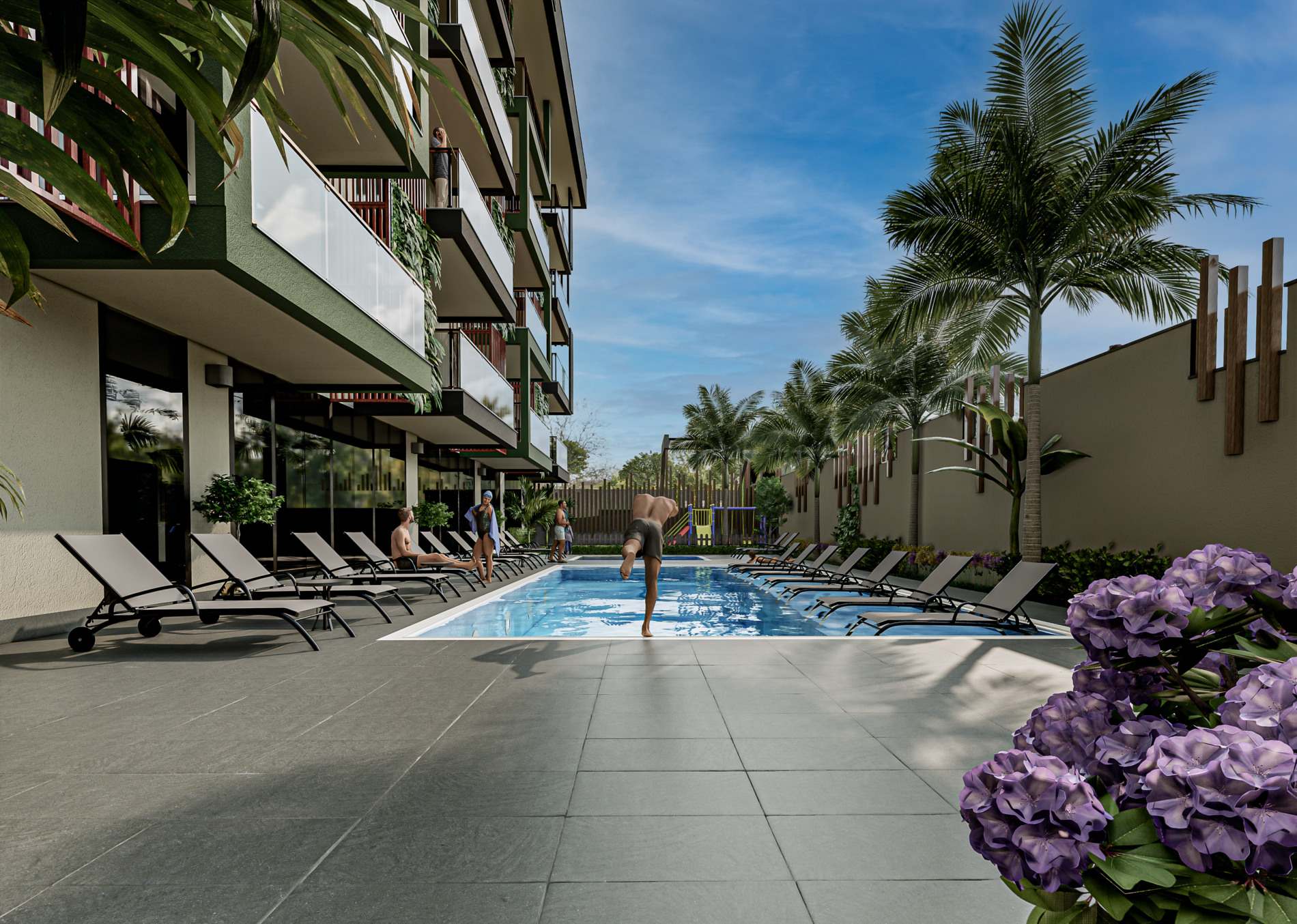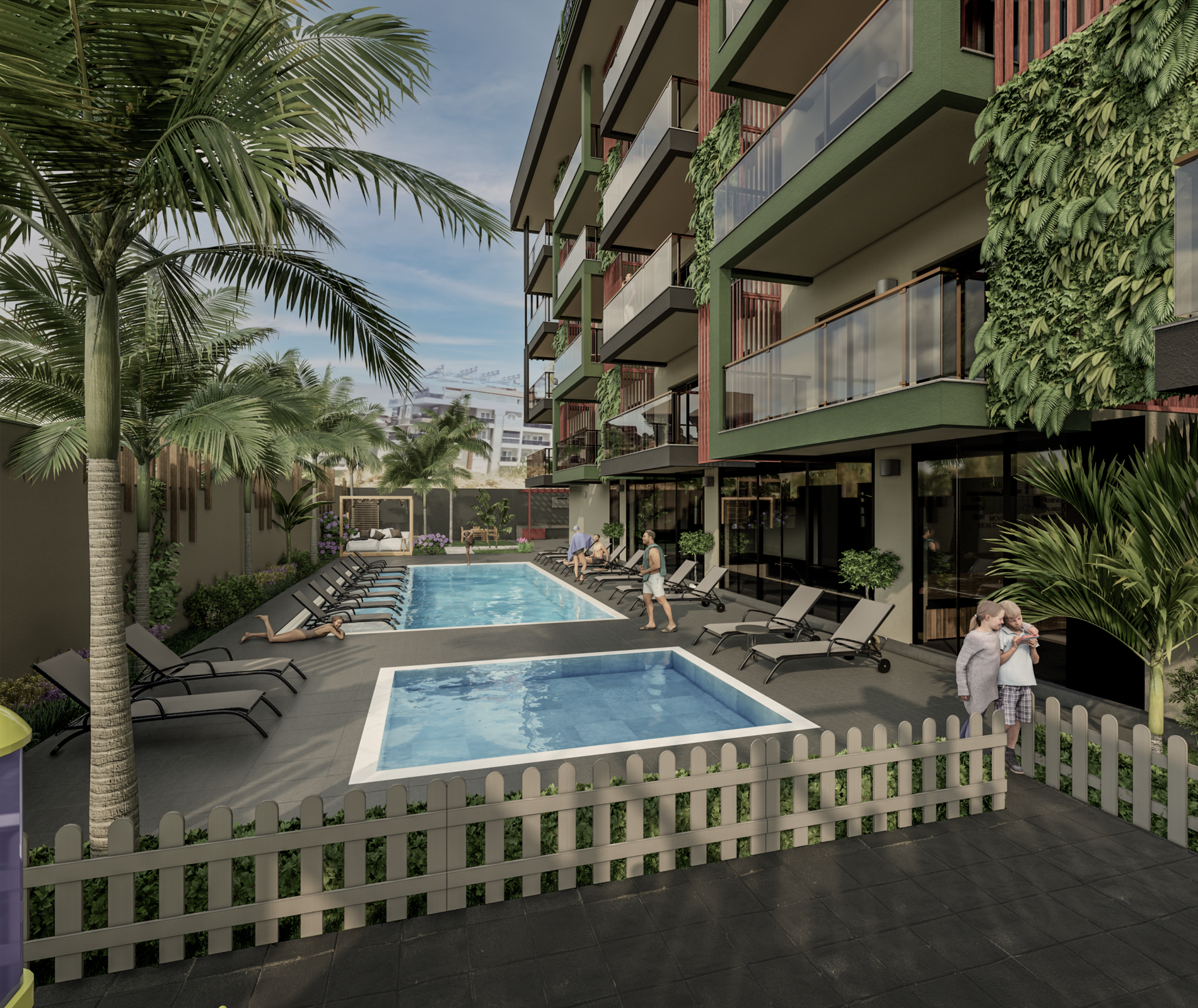 Auf einer Fläche von 1400 m2 befindet sich 1 Block (9 Wohnungen 1 + 1, 8 Wohnungen 2 + 1, 3 Duplex-Penthouse 4 + 1). Die Infrastruktur der Wohnanlage befindet sich im Untergeschoss der Anlage und im Gemeinschaftsbereich. Der Komplex ist von Mauern umgeben, aus Sicherheitsgründen sind im gesamten Gebiet sowie in den öffentlichen Bereichen Videoüberwachungskameras installiert.