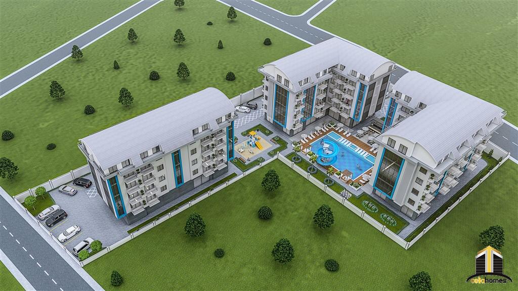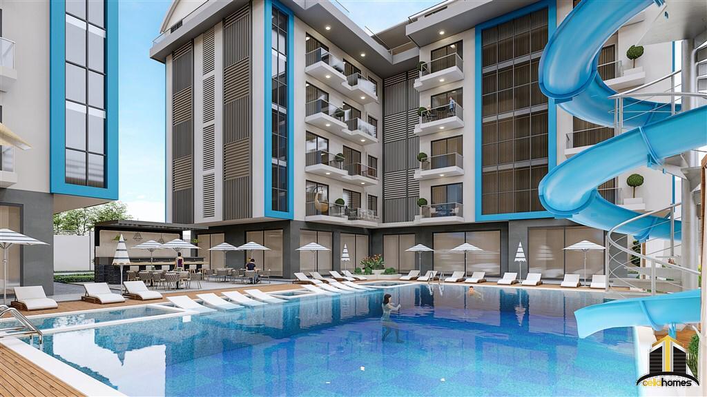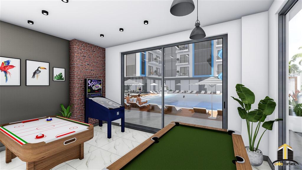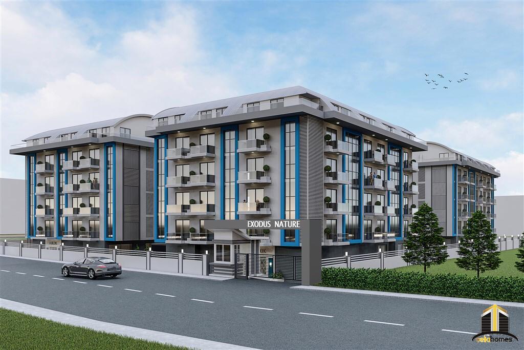 At this early stage of construction, it is possible to combine 2 or more adjacent apartments into one single unit, should this satisfy your individual needs and requirements.The social facilities of Exodus Nature Residence are extensive and will include: Outdoor swimming pool with pool bar, heated indoor pool, a steam room, a Turkish bath (Hammam), massage rooms, a fitness suite, a SPA area, a cinema, a cafeteria and mini-bar, children’s playroom, outdoor playground and a karaoke room.In addition, there will be an electric generator, free Wi-Fi available throughout the social areas, video surveillance system, resident caretaker services and a daily shuttle service to the beach which will operate several times a day.Exodus Nature Residence is located 4,000 metres from the beach, 3,000 metres from Alanya centre and 30 km from Alanya- Gazipasa International Airport.